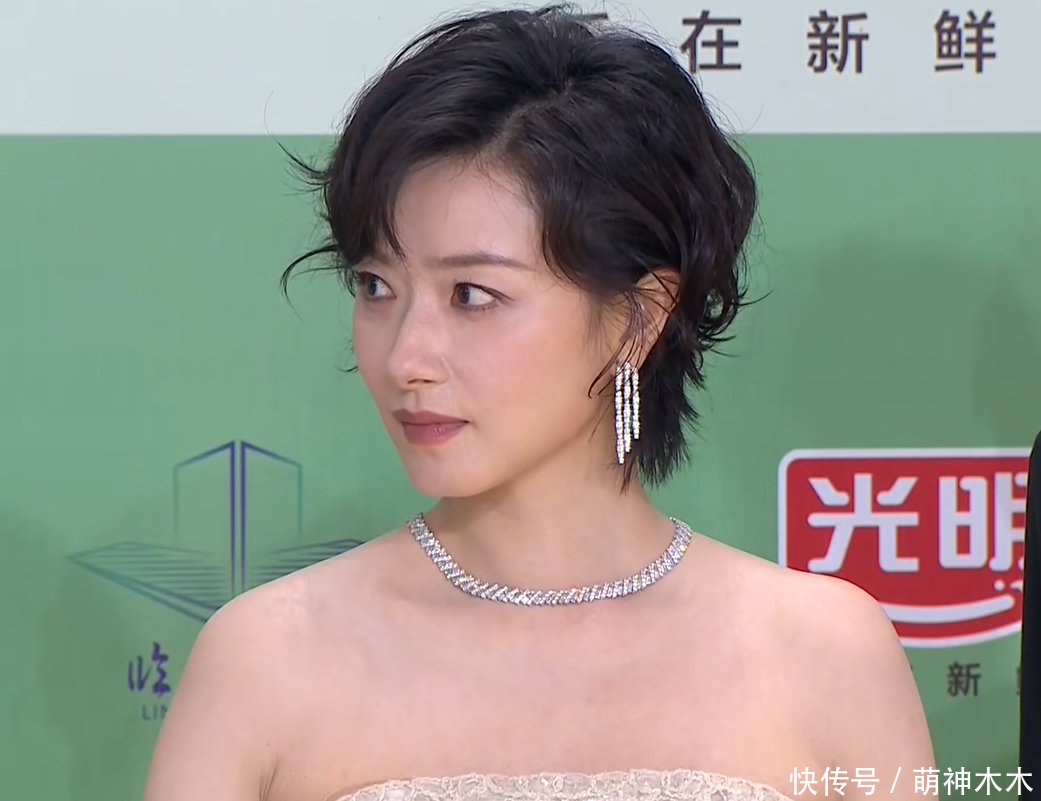 43岁万茜生图气象至极可以,短发造型和她的气质完好意思契合,妆容更是清透干净,天然眼底不行幸免看出青黑,不外比起浓墨重彩的大白脸,依然淡妆相比合适奖项红毯。